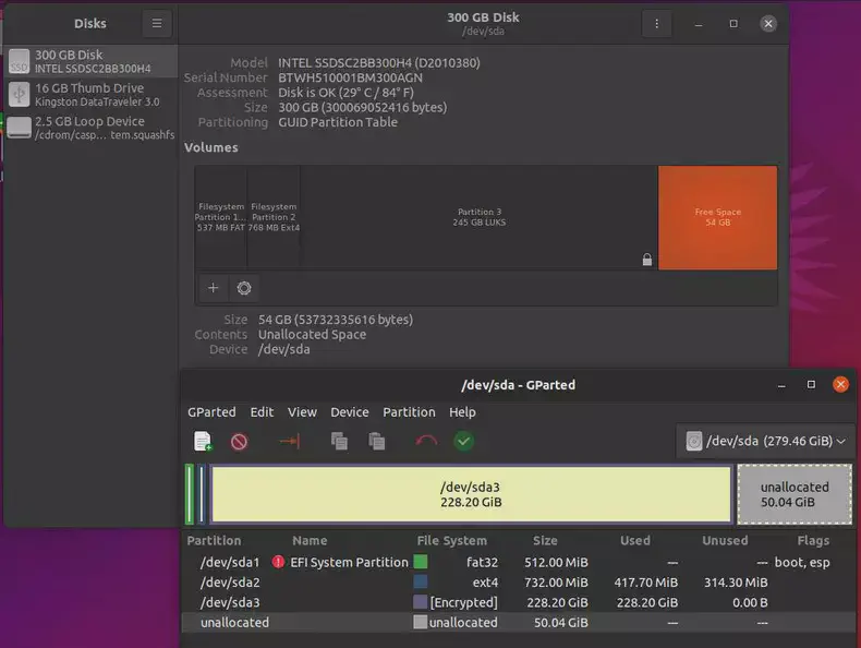 If you calculated everything correctly, you can open gparted/Ubuntu disks and see that you have nice unallocated space 🚀